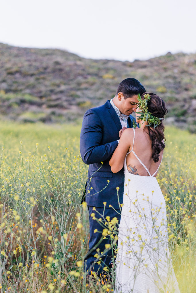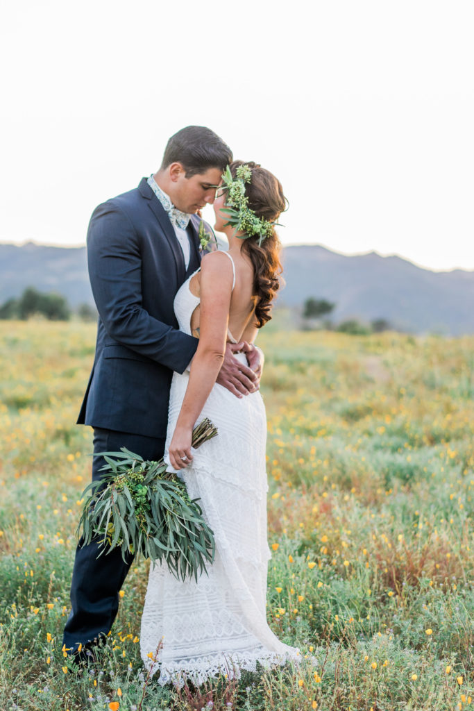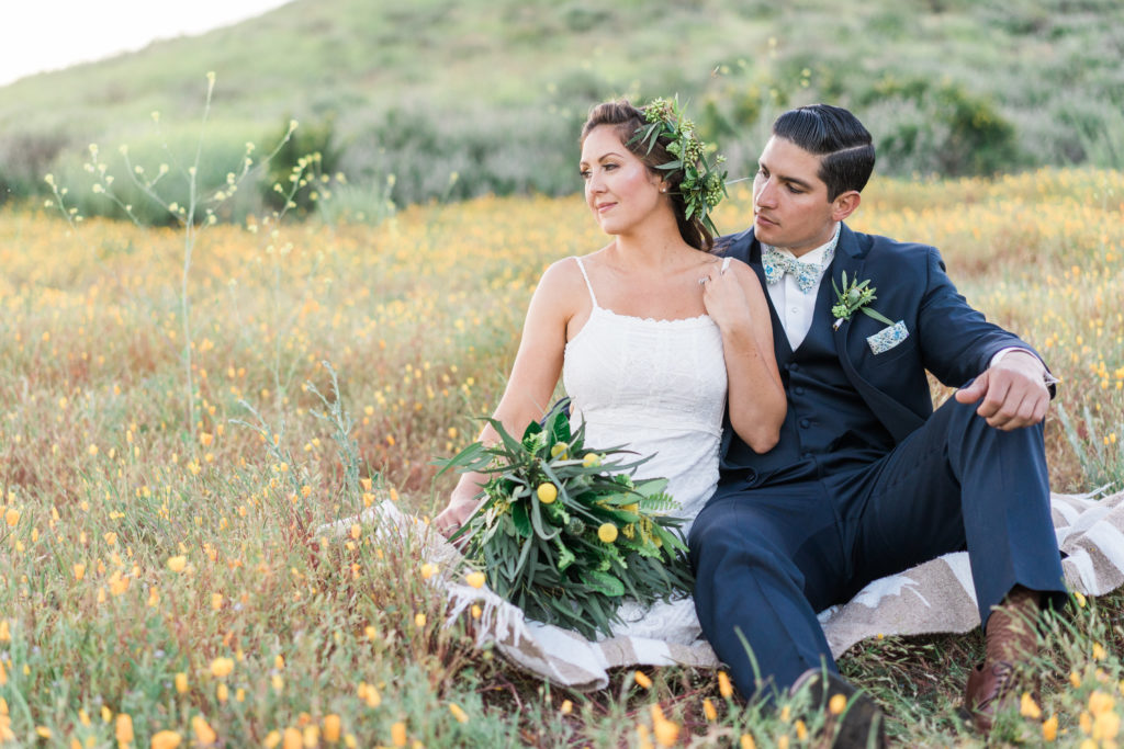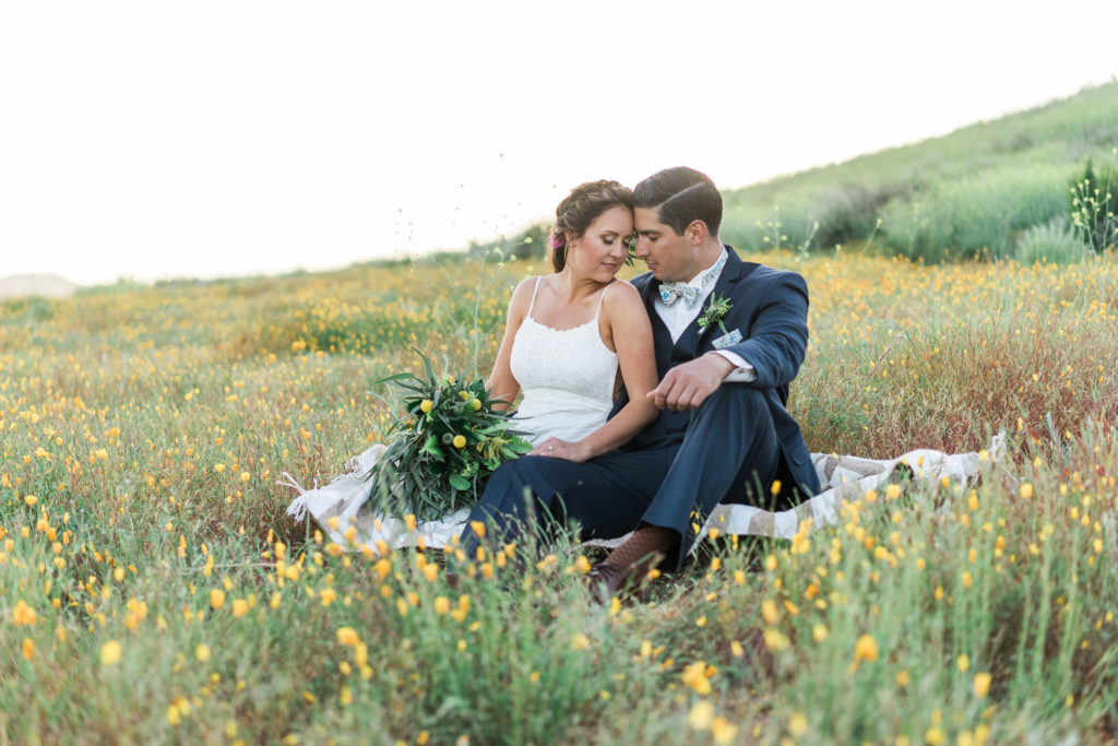 In April I was fortunate enough to participate in my very first Styled Photoshoot! Styled shoots are photoshoots that are put together by many vendors including photographers, florists, clothing companies, hair & make-up artists, etc. to use for advertising for their businesses. We had this shoot in Wildomar in the middle of the blooming poppies, and it ended up being such a beautiful day. It was nice to get away from Orange County and explore some natural beauty in the hills at golden hour. Our sweet couple modeling for us had a knack for romantic posing and their sweet interactions made everyone feel all the feels!